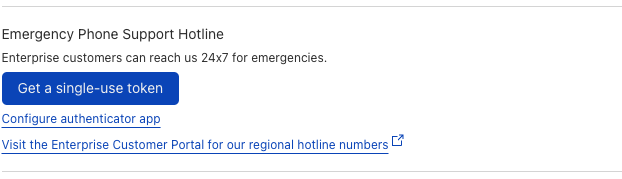 | Emergency Phone Use phone support to reach out during emergencies such as site outages or DDoS attacks.  | Yes | No | No | No |